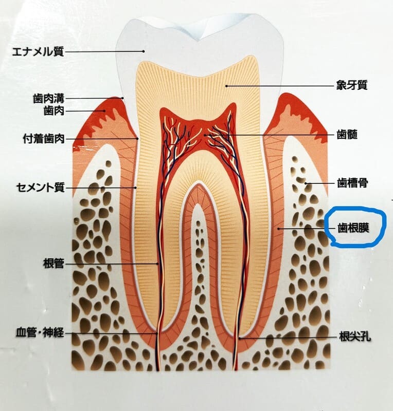 歯根の歯周組織の中でも歯根膜に炎症が広がると歯根膜炎になり、症状が長引くことが多いのです。
